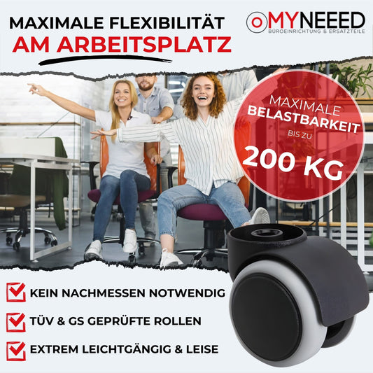 Premium Bürostuhl Hartbodenrollen, Sicherheitsdoppelrollen Ø65mm
